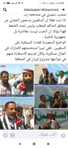 لكنها تعد القافلة .. لوحة فنية فريدة تفرد بها الشعب اليمني الحكيم الواعي لما يدور من حوله من استهدافات والمدرك لمكائد اعدائه فقد عبرت قيادات سلفية كان على رأسها الشيخ صالح العويري، مندوب السلفيين، بقوله بأن أواصر الدم اليمني لا يمكن لها أن تندثر بين فتن الطائفية المقيتة، التي تستخدمها دول التحالف، وأن الاعيب دول التحالف باتت مكشوفه واساليبها معروفة وعلى الجميع التعامل بمسؤولية تجاه الامة والوطن.