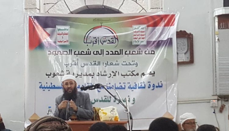 المنهاج نت – عقدت اليوم بصنعاء ندوة فكرية وثقافية تحت شعار “القدس أقرب” وحملت عنوان  “من شعب المدد الى شعب الصمود” وقدمت خلال الندوة التي رعاها مكتب الارشاد بمديرية شعوب في امانة العاصمة ورقتان عمل اولها ورقة القيادي السلفي، ورئيس جمعية الارض الطيبة، الشيخ عبد الخالق حنش، والتي حملت نفس عنوان الندوة، التي تحدث فيها حول صراع الامة مع اليهود، وعن مسؤولية الأمة تجاه هذا الصراع.