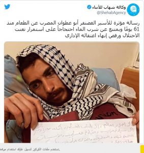 من مواقع التواصل – وكالة شهاب تنشر رسالة الأسير أبو عطوان