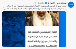 الجدير بالذكر أن مفتى الديار النيجيري إبراهيم الحسيني: “النضال الفلسطيني المشروع ضد العدو الصهيوني، سينتصر في النهاية، والاحتلال الى زوال، مضيفاً : ” والدولة الفلسطينية ستقام وعاصمتها القدس الشريف.