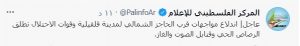 متابعات المنهاج نت – أفادة مصادر فلسطينية باندلاع اشتباكات بين الشباب الفلسطيني الثائر وجنود الاحتلال الصهيوني قرب الحاجز الشمالي في مدينة قلقيلية.