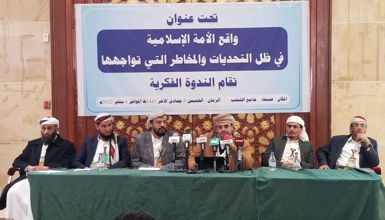 حيث احتضنت صنعاء ندوة فكرية وثقافية سلفية “بعنوان “واقع الامة الإسلامية في ظل التحديات والمخاطر التي تواجهها” وفي الندوة التي حضرها ممثلين عن الجانب الرسمي والمجتمعي وقيادة أنصار الله ” الحوثيين ” أشار عضو المكتب السياسي لأنصار لله الدكتور حزام الأسد، الى المكائد والدسائس والمخاطر التي لا يكل ولا يمل أعداء الأمة القيام بها مستهدفين وجود الأمة لجعلها أمة ضعيفة وخانعة ذليلة وغير قادرة على الدفاع عن نفسها وفق ما ترغب قوى الاستعمار.