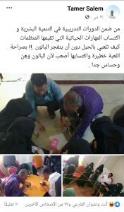 من جانبه عبر الناشط تامر سليم ساخراً عن مهام المنظمات مخاطباً ارباب الاسر اليمنية بقوله” من ضمن الدورات التدريبية في التنمية البشرية واكتساب المهارات الحياتية التي تقيمها المنظمات كيف تلعبي بالحبل دون ان ينفجر البالون موضحاً سخطه بسخريته بأن اللعبة خطيرة واكتسابها اصعب لأن البالون وهن وحساس جداً.