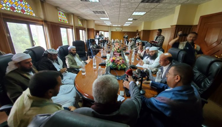 أثناء استقبالهم لوفد أنصار الله “الحوثيين” مشائخ السلفية في إب تؤكد على الاستمرار في مواجهة الأعداء.