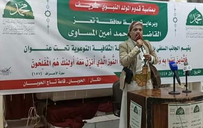 المنهاج نت – أشاد الاستاذ محمد الحميري، عضو رابطة علماء اليمن، وكيل وزارة الإرشاد لشؤون الحج والعمر لقطاع القران الكريم، بالحضور السلفي اللافت، وبالتفاعل البارز بالفعاليات المجتمعية إحتفاءً بقدوم مناسبة المولد النبوي الشريف، على صاحبه أفضل الصلاة وازكى التسليم في محافظة تعز.