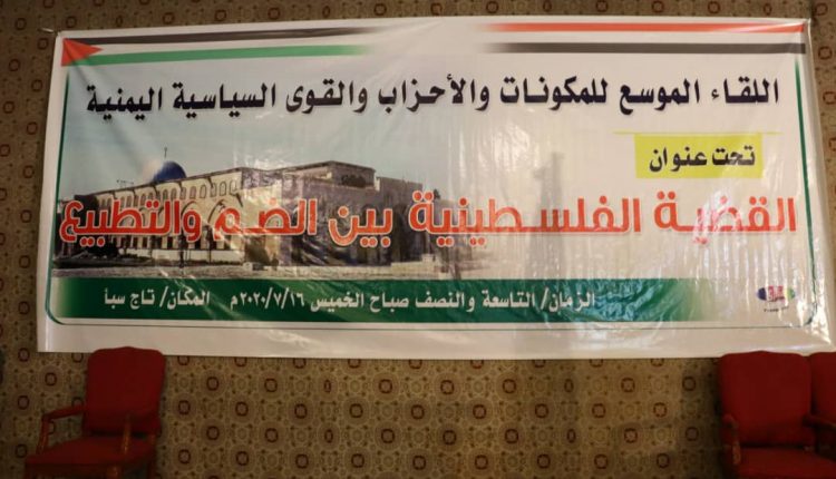 منهاج نت ـ عقدت المكونات والأحزاب والقوى السياسية اليمنية لقاء موسعاً تحت عنوان “القضية الفلسطينية بين الضم والتطبيع”.