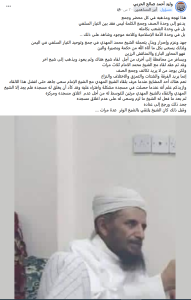 ولفت الى المعوقات العراقيل التي تواجه الشيخ بقوله ” ازيدكم علم أنه عندما حصلت في مسجده مشكلة وافتراء عليه وقد كآد أن يغلق له مسجده فلم يجد إلا الشيخ المهدي والتقاء بالشيخ المهدي مرتين للتوسط له من أجل عدم اغلاق مسجده ومركزه ثم بعد ما فعل له الشيخ ما لزم وسعى له على عدم اغلاق مسجده، جحد ذلك ورجع إلى عناده كما ذكر المصدر لقاءات الشيخ المهدي بالشيخ الوتر المتكررة كما ذكر في المنشور الخاص به.