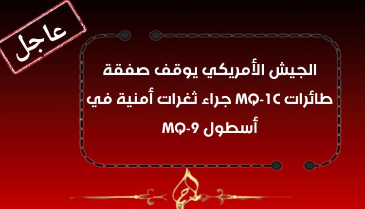 الجيش الأمريكي يوقف صفقة طائرات MQ-1C جراء ثغرات أمنية في أسطول MQ-9 المنهاج نت ـ خاص Last updated مايو 4, 2025 #عاجل مشاركة