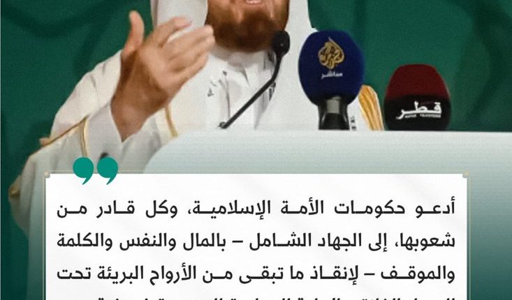 رئيس الاتحاد العالمي لعلماء المسلمين يدعو إلى “الجهاد الشامل” لنصرة غزة وإنقاذ أرواح الأبرياء